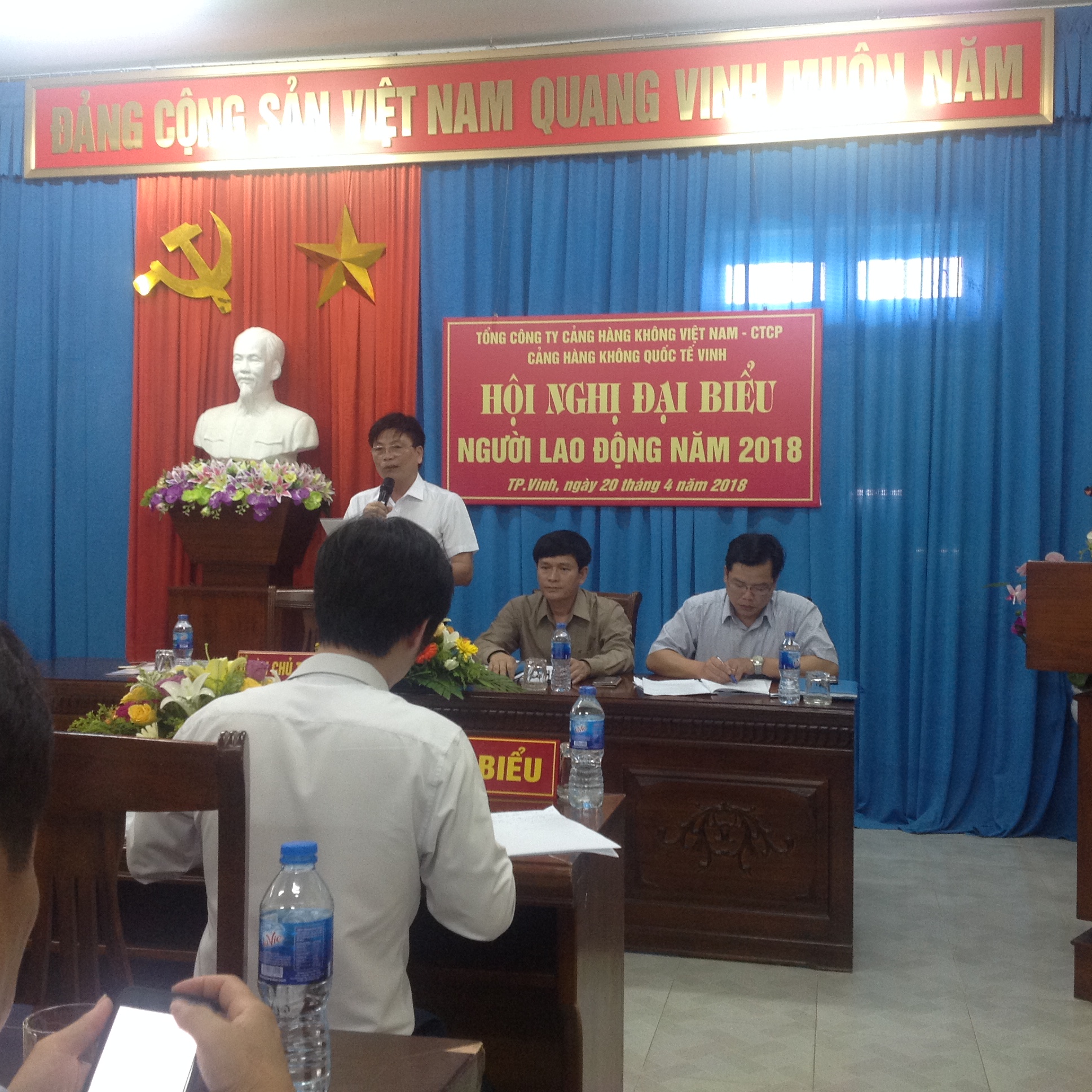 Thực hiện Chỉ đạo của Tổng công ty Cảng HK Việt Nam về Tổ chức Hội nghị người lao động năm 2018, Ngày 20/4/2018 Cảng HKQT Vinh đã triển khai tổ chức Hội nghị NLĐ tại các đơn vị trực thuộc và Hội nghị đại biểu toàn Cảng năm 2018 với sự có mặt của Ban lãnh đạo và 50 đại biểu được bầu từ các đơn vị.