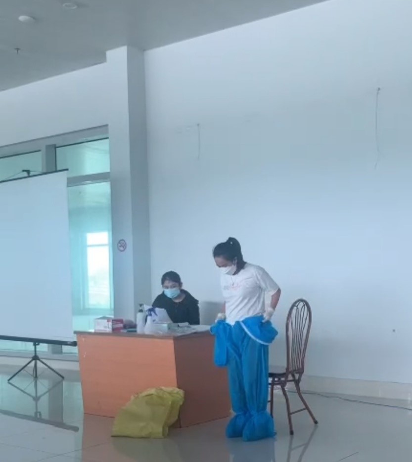 Ảnh: CBNV thực hành cách mặc và tháo bỏ bảo hộ cá nhân