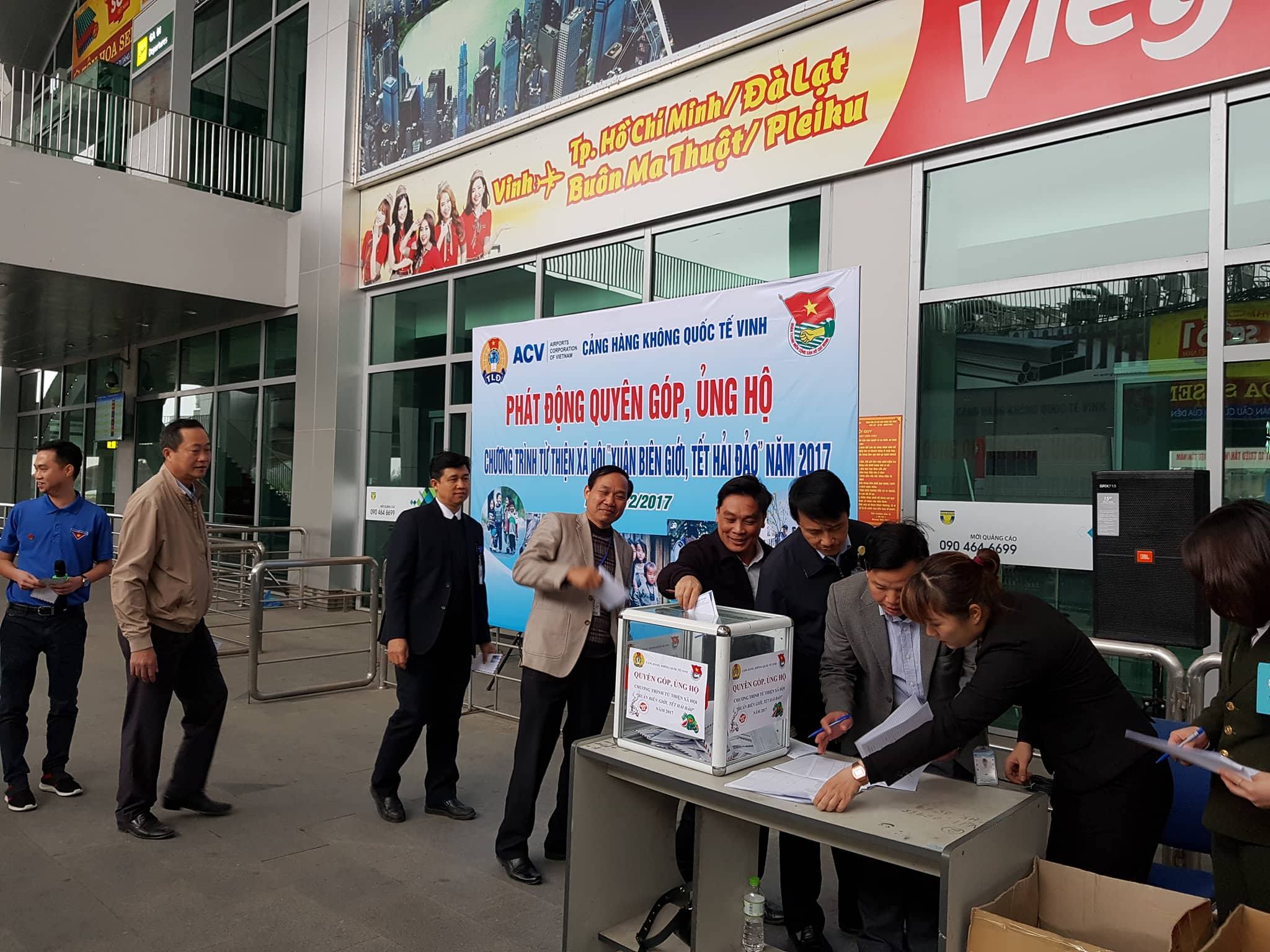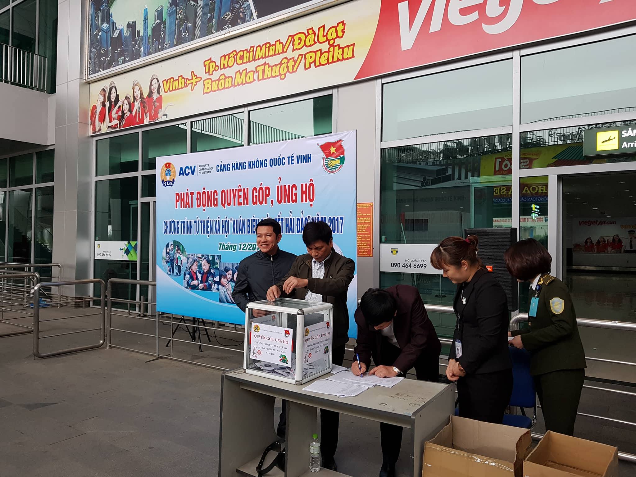 Ngày 26/12/2017, BCH Đảng ủy – Công đoàn – Đoàn Thanh niên Cảng hàng không quốc tế Vinh tổ chức lễ phát động CBCNV quyên góp ủng hộ từ thiện xã hội “Xuân biên giới – Tết hải đảo” .