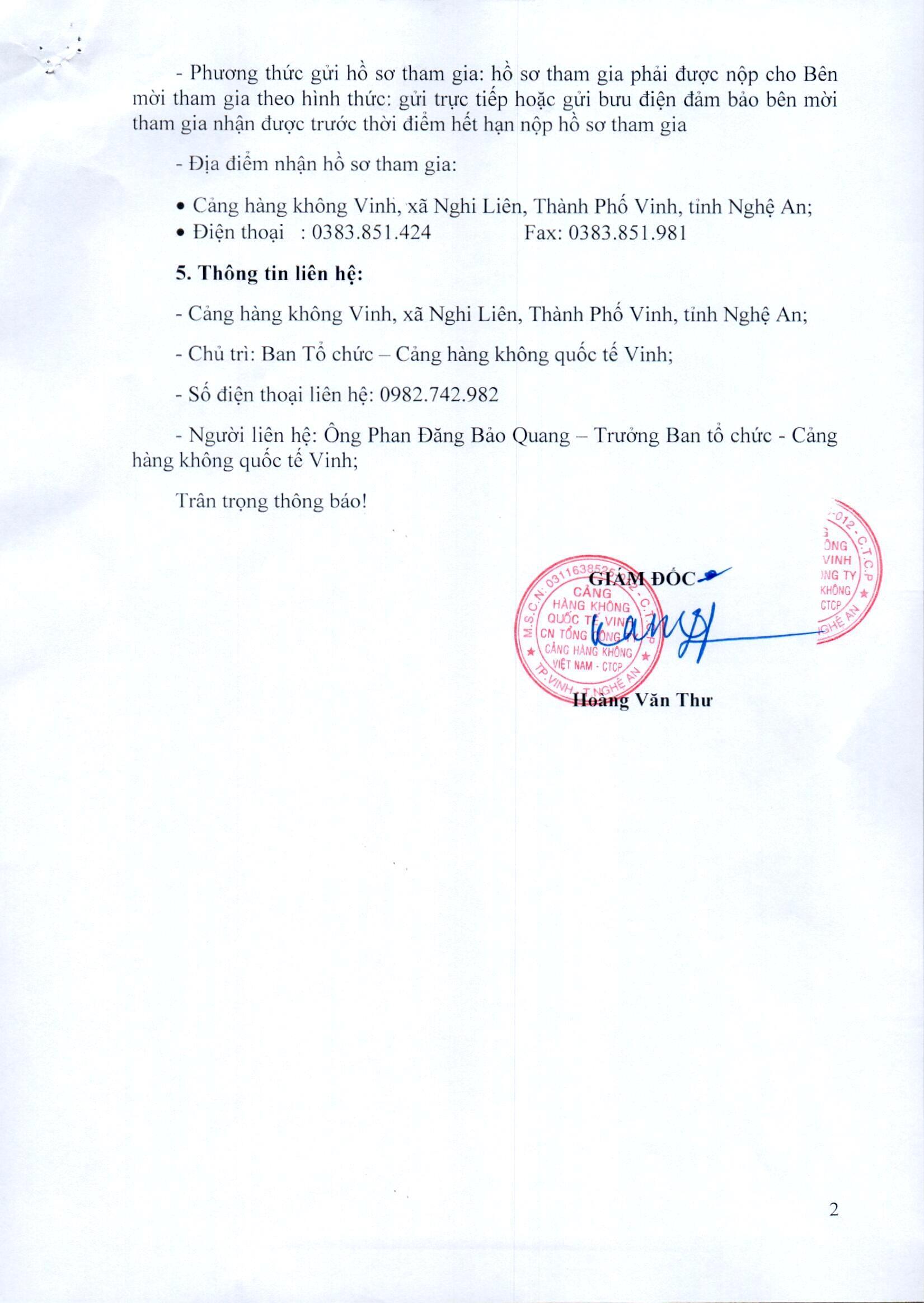 Thông báo mời chào giá về việc Cung cấp hàng hóa dịch vụ cho hạng mục - Trang bị phương tiện bảo vệ cá nhân cho người lao động tại Cảng HKQT Vinh