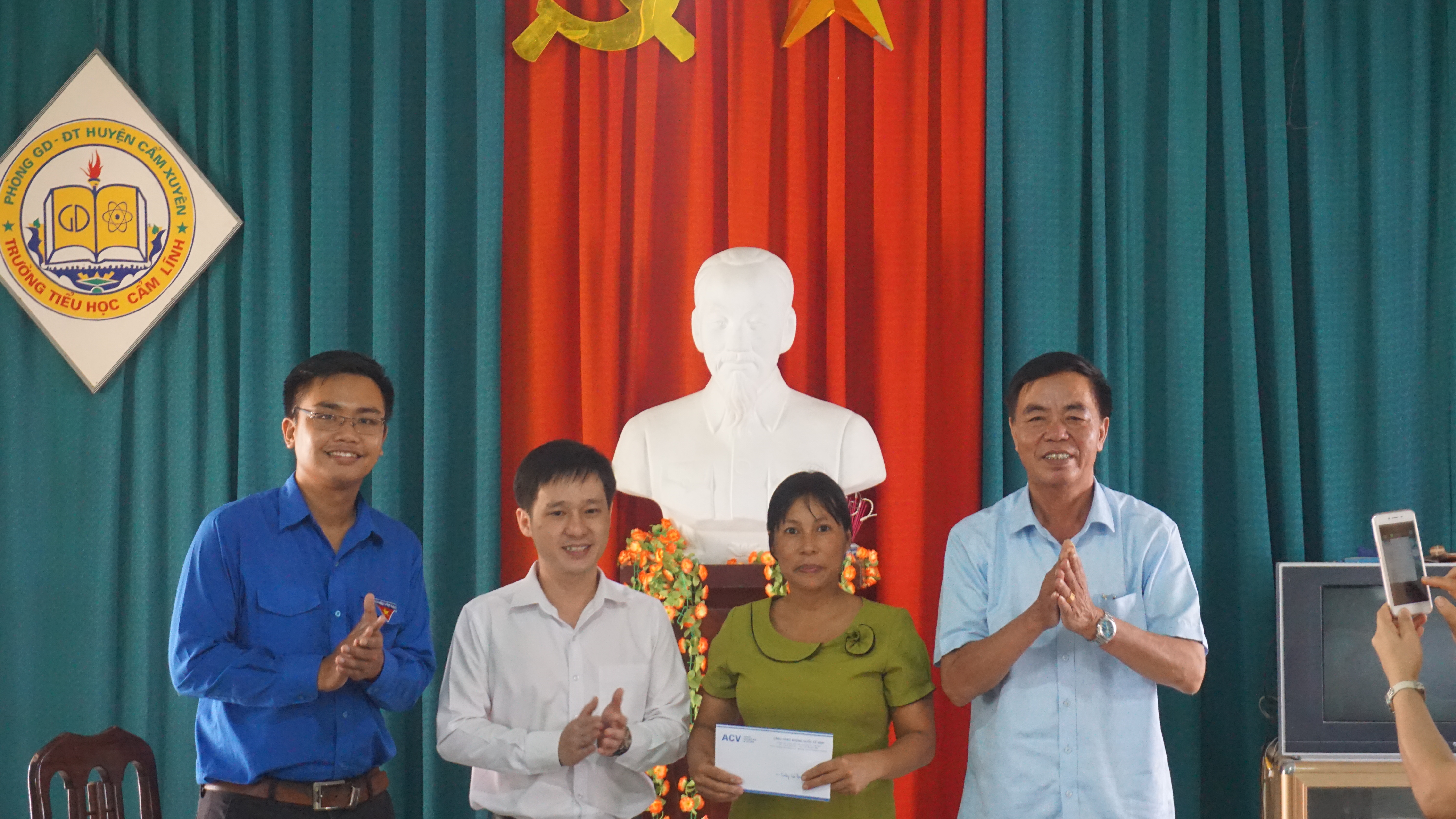 – 05 suất quà là tiền mặt cho 05 trường học đóng trên địa bàn huyện: Trường Mầm non Cẩm Thịnh, Trường Mầm non Cẩm Lĩnh, Trường Tiểu học Cẩm Lĩnh, Trường Tiểu học Cẩm Hưng, Trường THCS Sơn Hà.