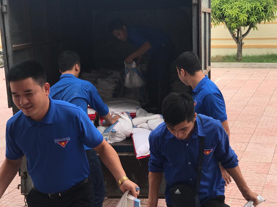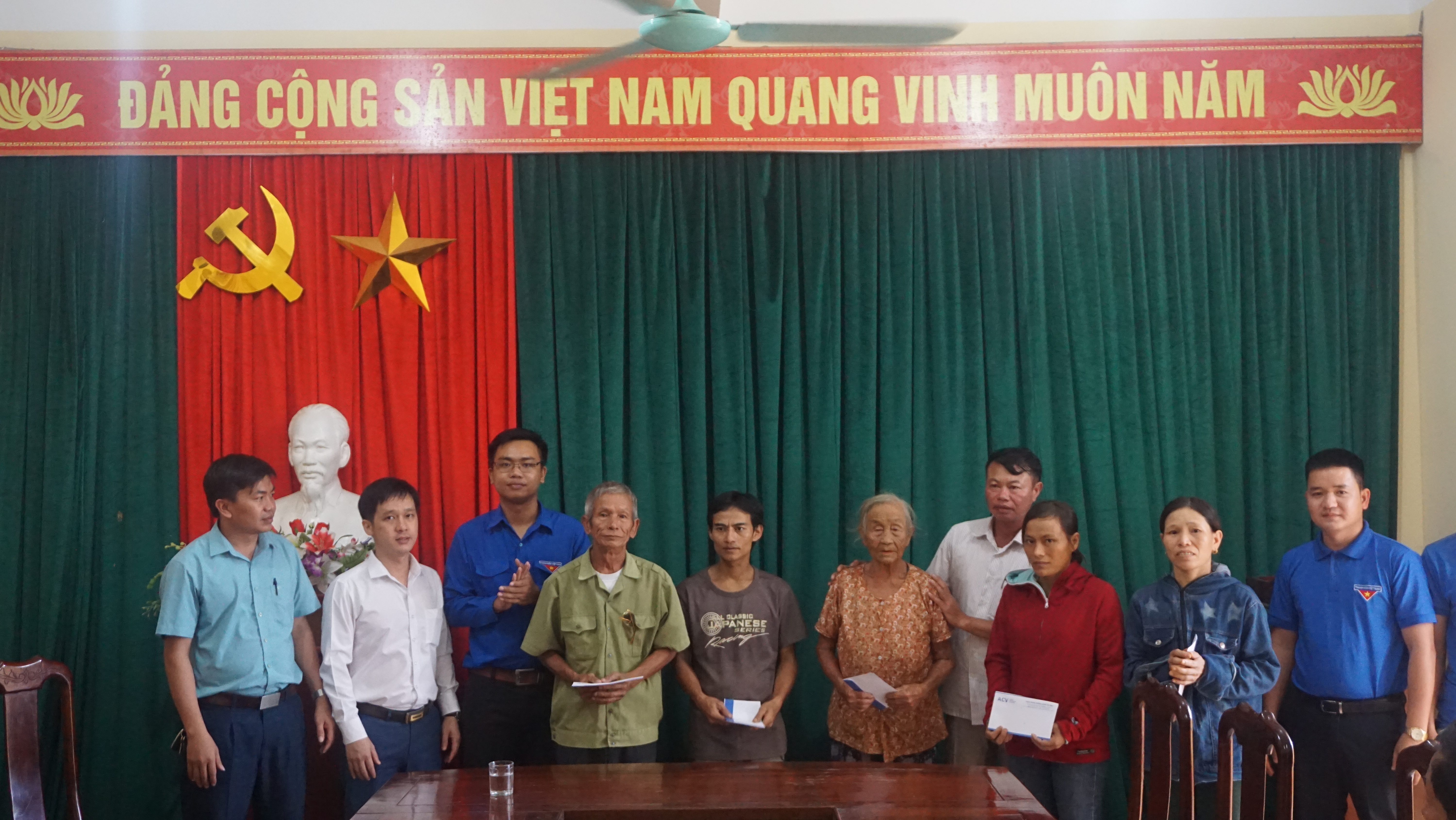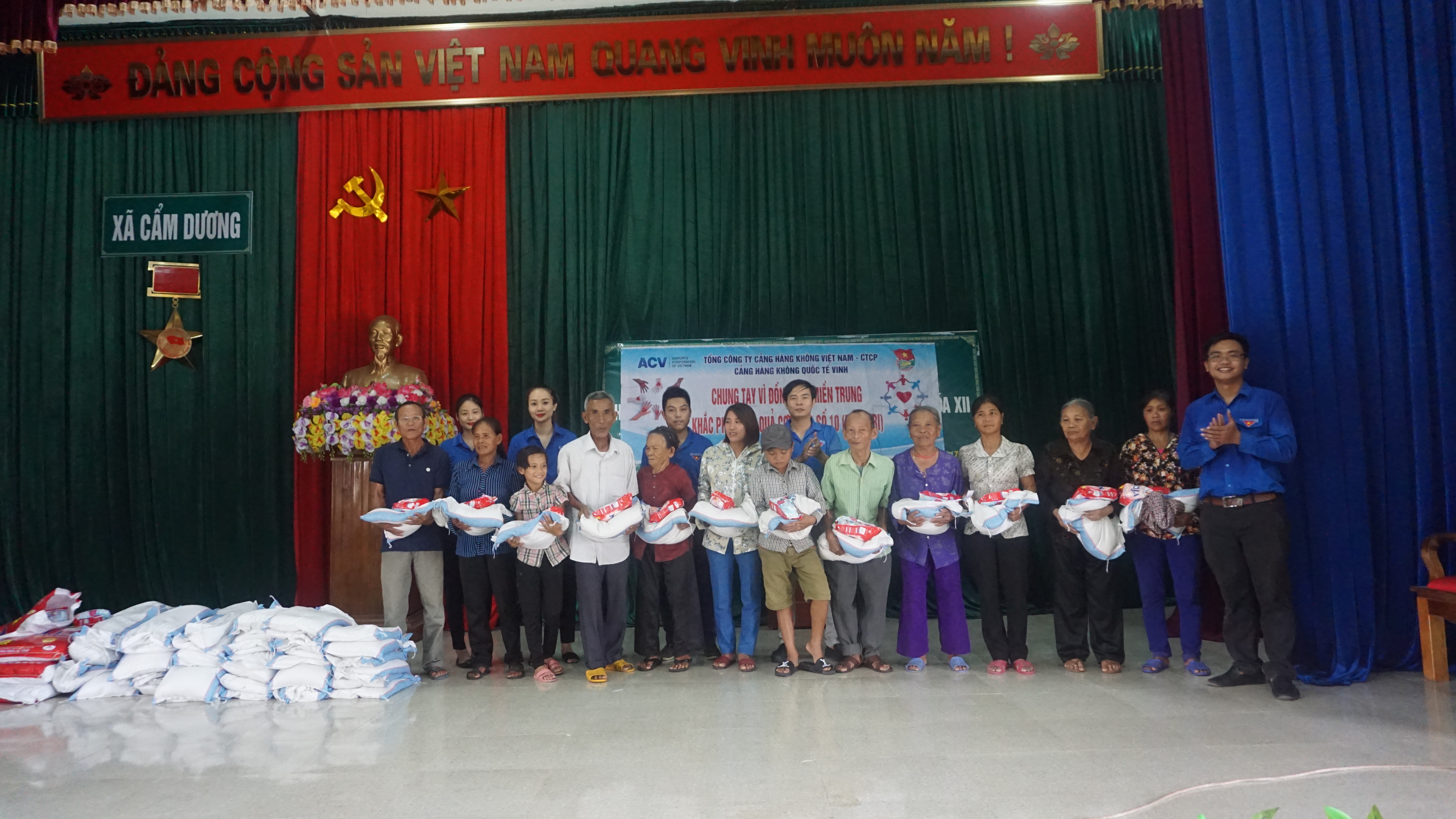 Thay mặt CBCNV và tuổi trẻ Cảng hàng không quốc tế Vinh, BCH Đoàn cơ sở đã hành trang về nơi bị bão đi qua, thăm hỏi và trao món quà đầy tình nghĩa đến bà con và các em học sinh Cẩm Xuyên gồm: