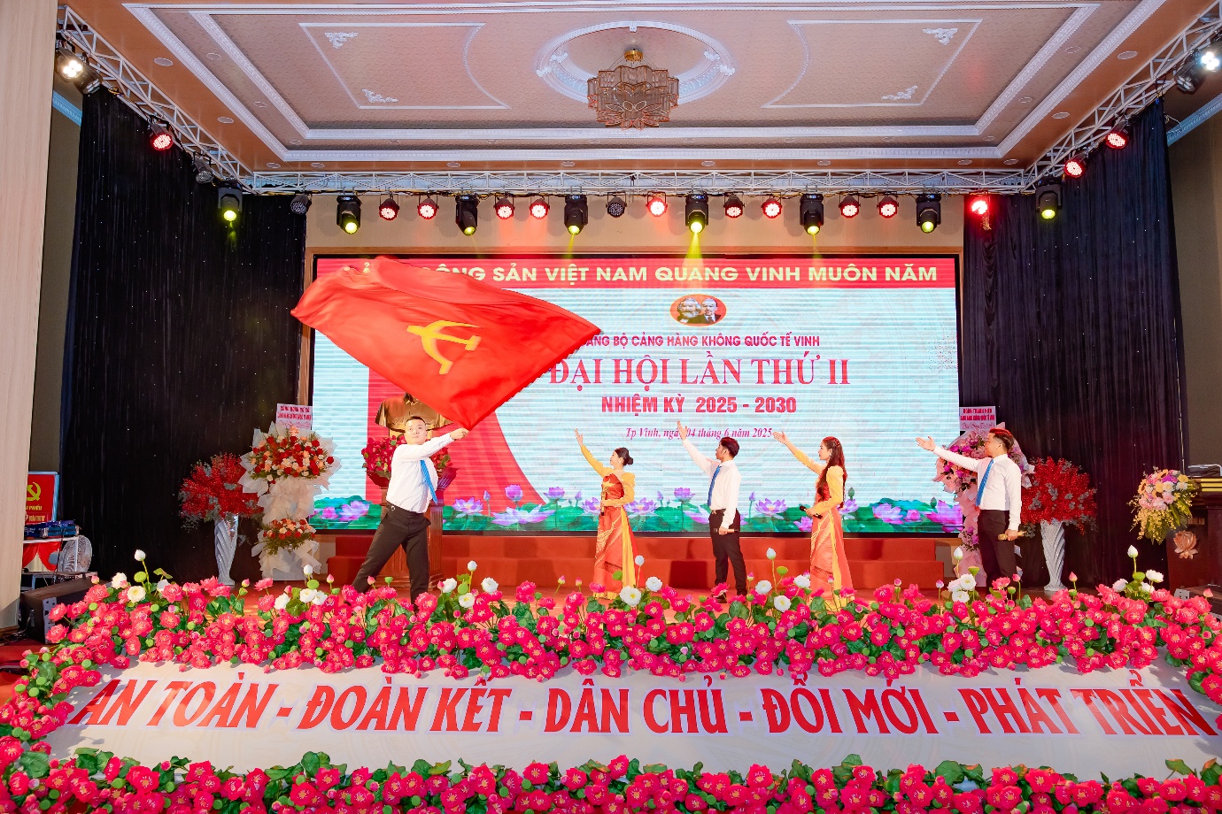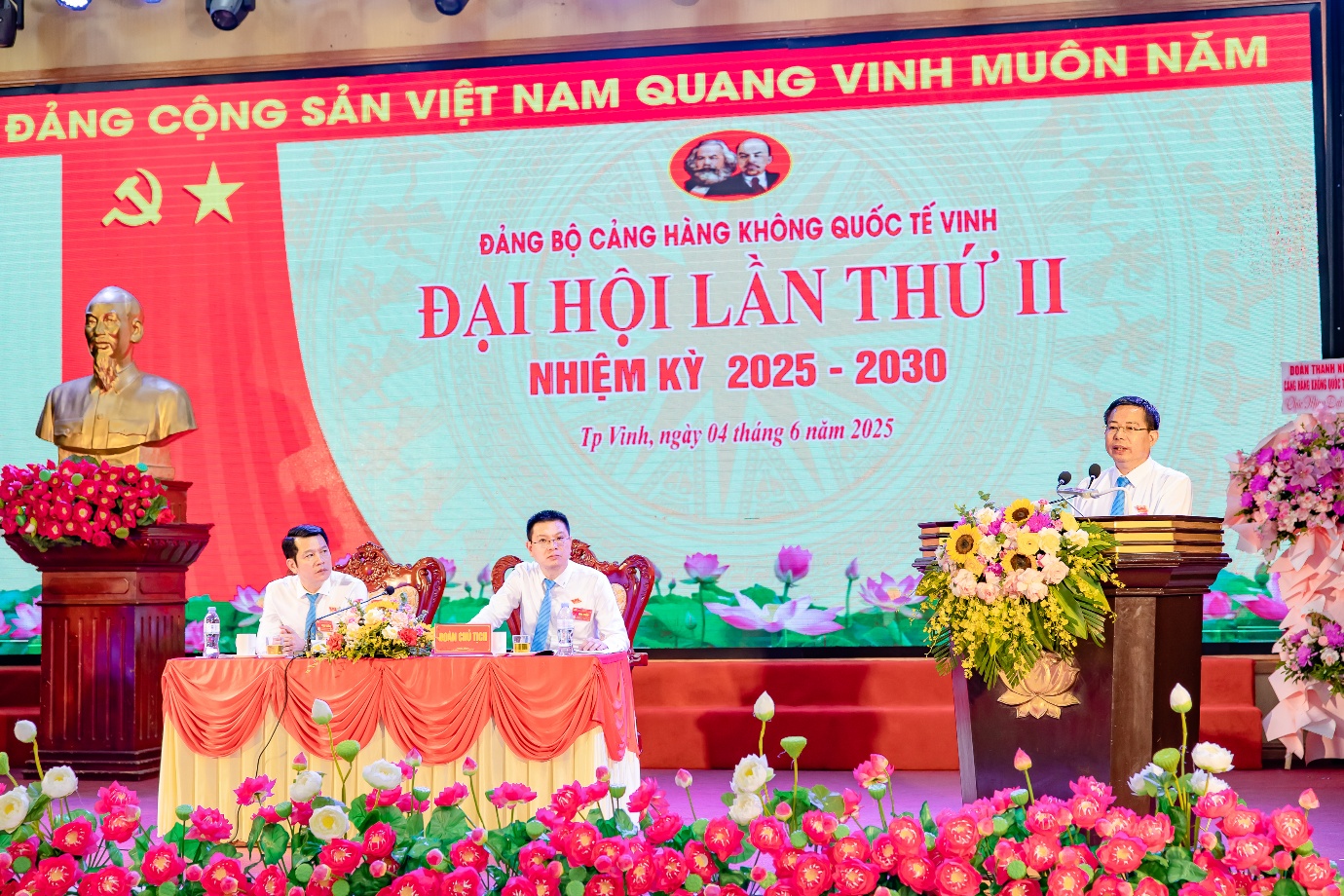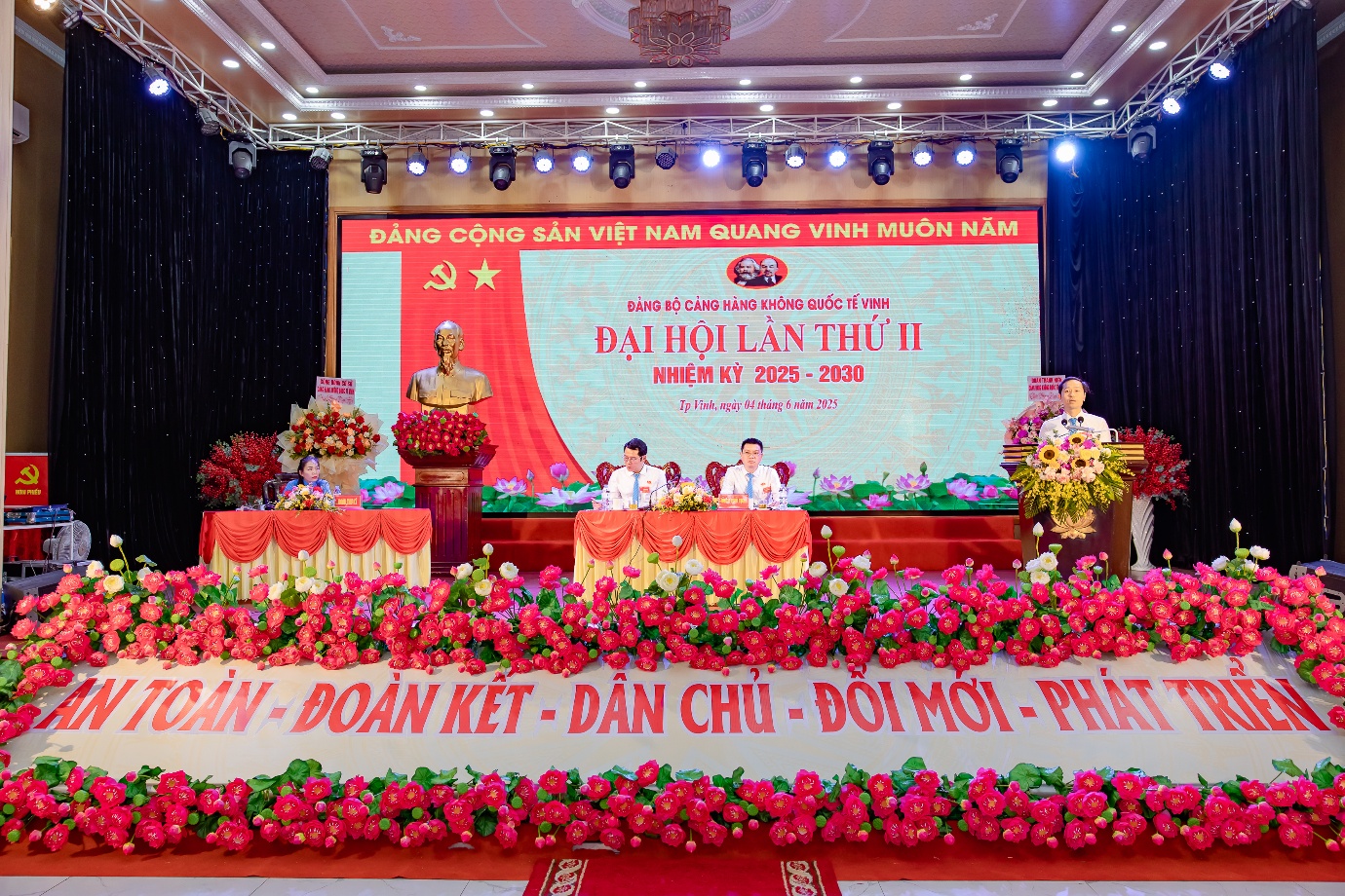 Ngày 04 tháng 6 năm 2025 – Đảng bộ Cảng hàng không quốc tế Vinh tổ chức thành công Đại hội đại biểu lần thứ II, nhiệm kỳ 2025-2030, đánh dấu một cột mốc quan trọng trong quá trình xây dựng và phát triển của đơn vị. Đại hội đã diễn ra trong không khí trang trọng, dân chủ và tràn đầy tinh thần trách nhiệm, khẳng định quyết tâm thực hiện thắng lợi các mục tiêu đề ra.