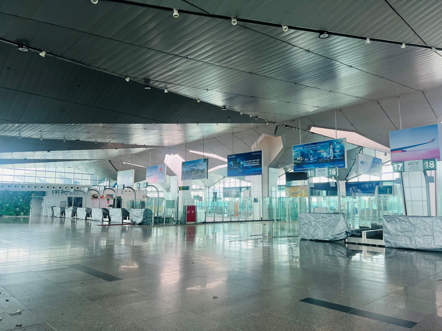 Ảnh: Khu vực quầy check-in tại Cảng HKQT Vinh được phủ bạt kín.